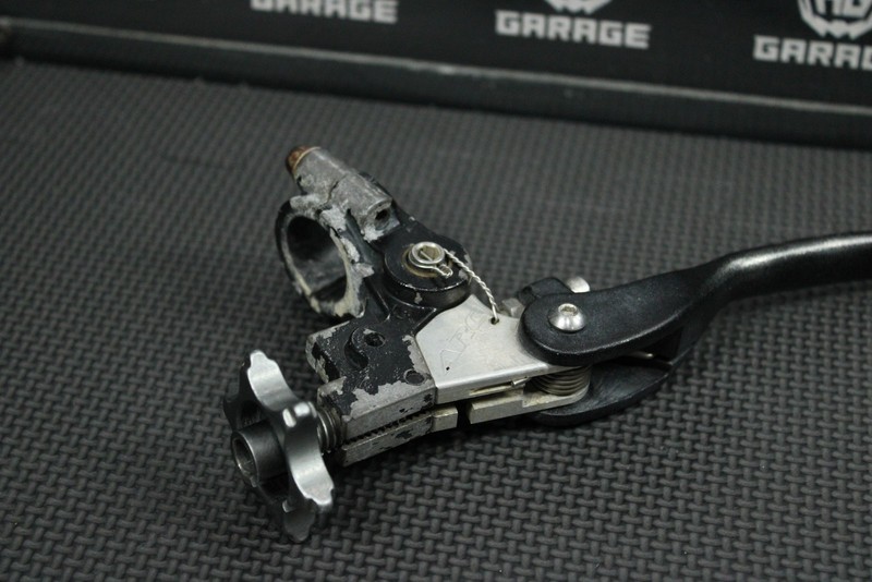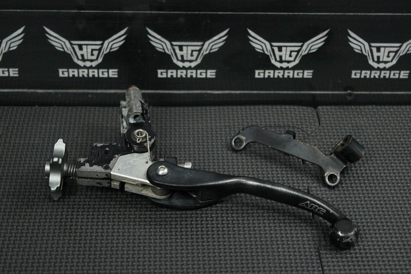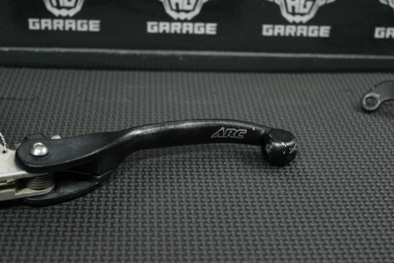 This ARC clutch lever with perch is in good condition and shows normal signs of wear. No cracks, or major bends. Pivots nicely. Black paint on perch has starter to flake but does not effect performance. Ready to install, and ride.