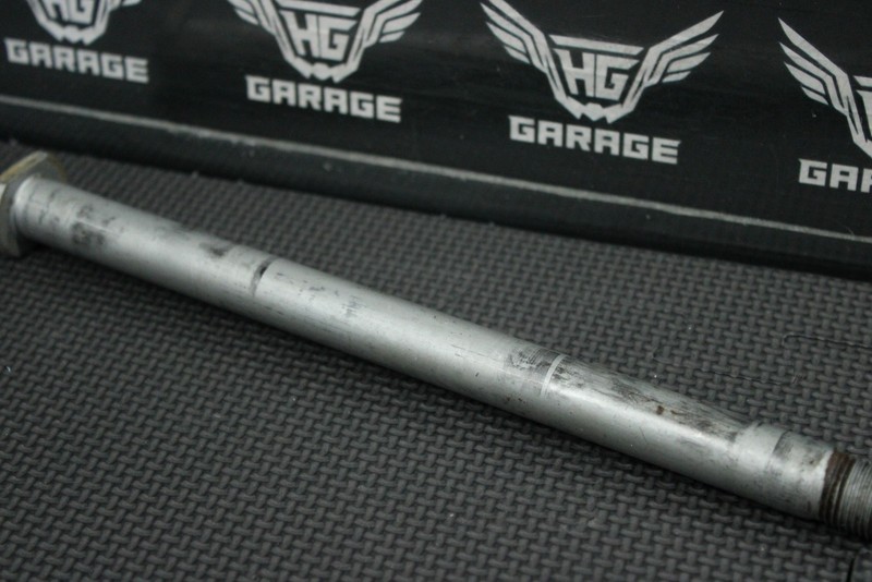 This swingarm bolt is in very good condition and shows normal signs of wear. No issues, or mashed threads. Ready to install.