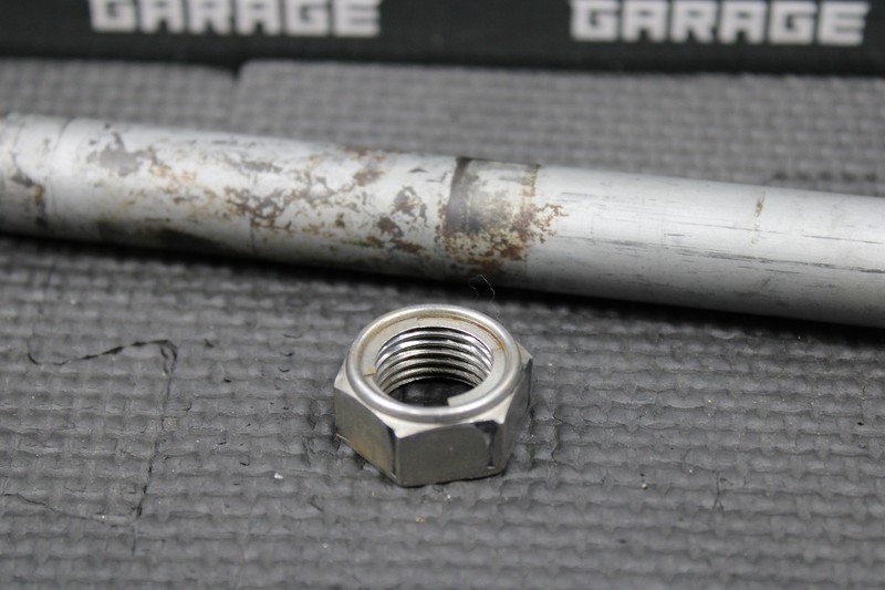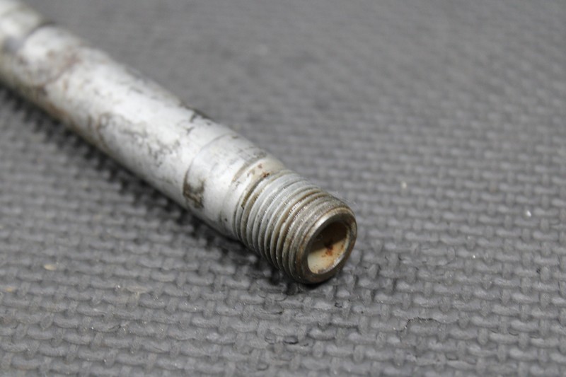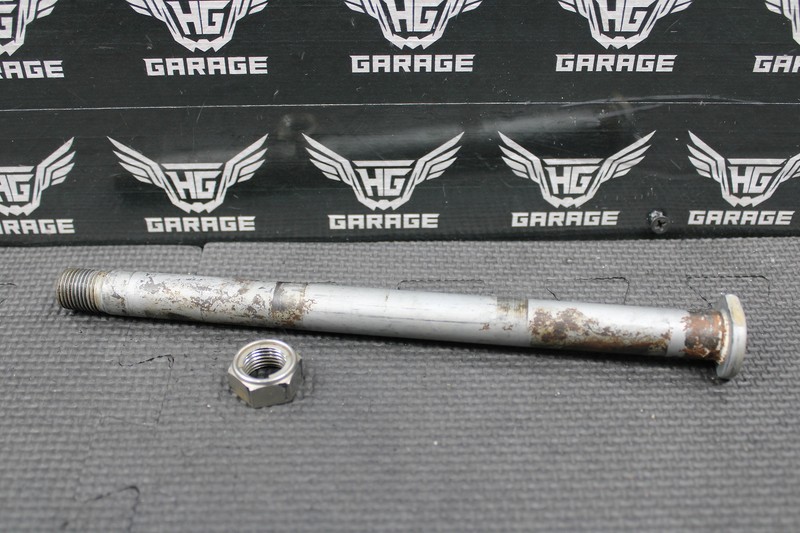 This swingarm bolt is in good condition and shows normal signs of wear. No damage to shaft or threads. Good useable shape.