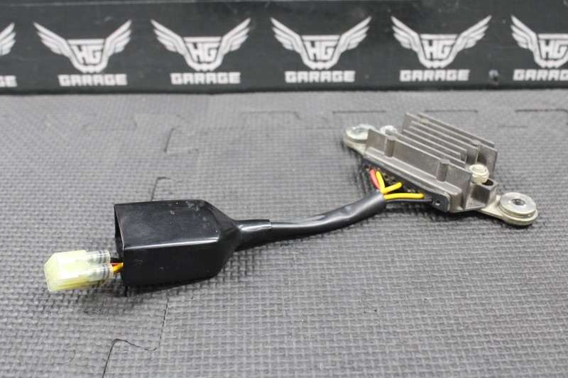 This OEM voltage regulator is in good condition and shows normal signs of wear. Removed from a good running bike. No damage or issues.
