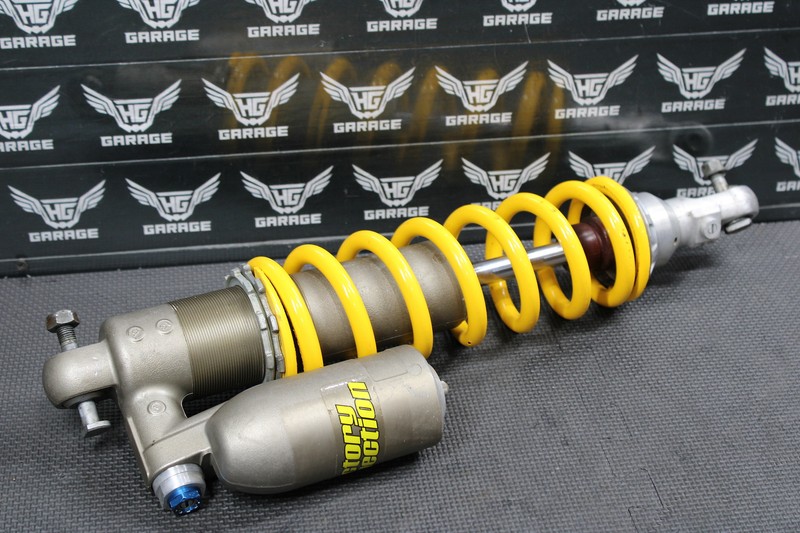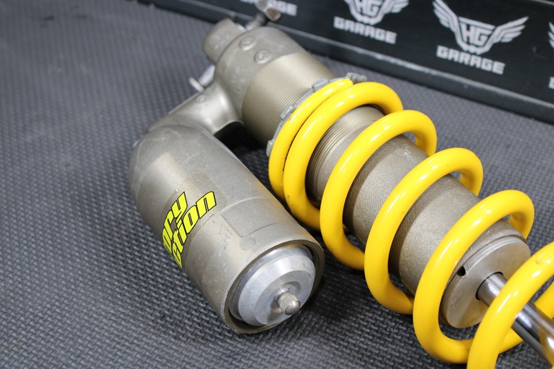 This rear shock is in very good condition and shows normal signs of wear. Great dampening and rebound. No leaks or issues seen when tested, and compressed. Low hours on recent rebuild. Nice factory connections shock spring installed. Both upper and lower bearings in great shape. Ready to bolt on and ride.