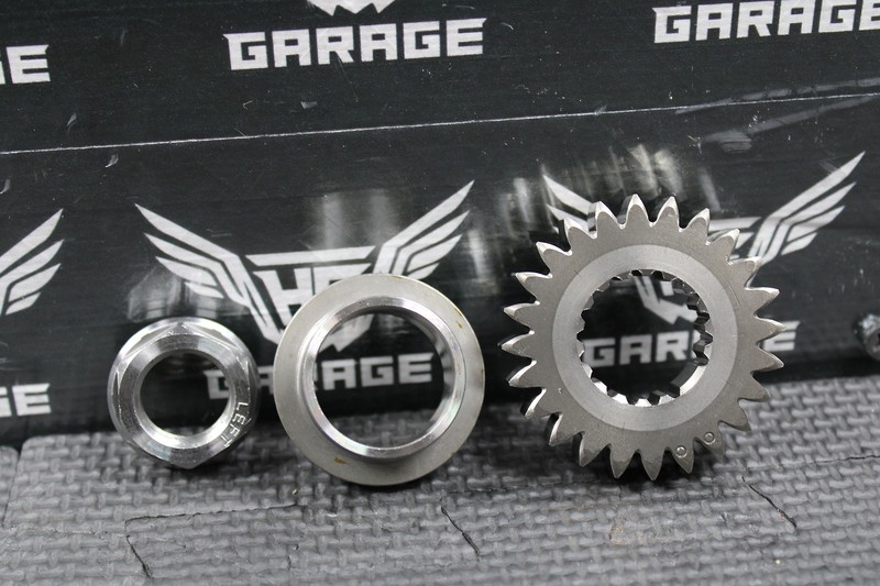 This crankshaft primary gear 24T is in very good condition and shows normal signs of wear. No damage or issues. Comes with all hardware as shown. Threads, gear and splines all intact.