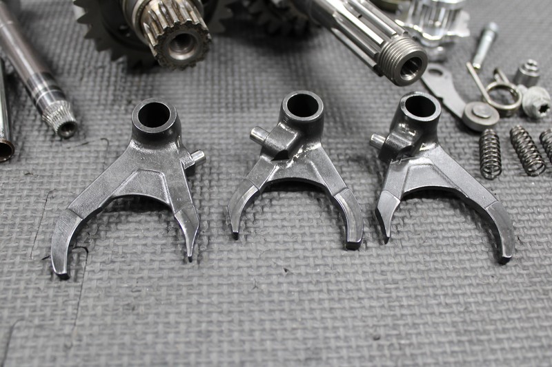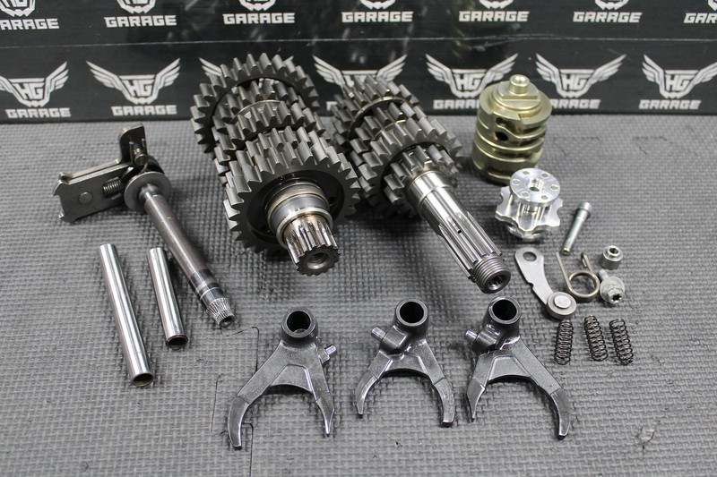 This complete transmission is in very good condition and shows normal signs of wear. No excessive wear or damage. Removed from a great running and shifting bike. All gears spin freely and have no damaged or chipped teeth. All shift dogs and forks in great shape with no issues. Very nice low hour trans. Ready to install and run!