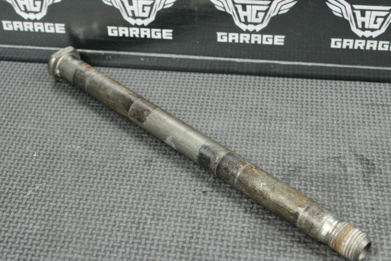 This swingarm bolt is in very good condition and shows normal signs of wear. No mashed ends, or bends. Ready to install, and ride.