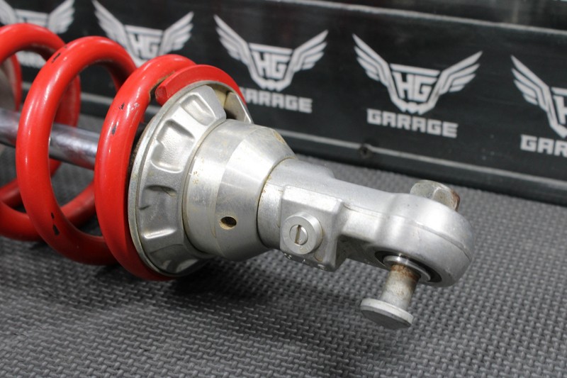 This rear shock is in very good condition and shows normal signs of wear. Great dampening, and rebound. No leaks seen when tested. Nice oem shock assembly. Shock shaft and shock body both in great shape with minor wear, no deep scratches, or gouges of any kind. Upper, and lower shock bushings in great shape with low wear. Ready to bolt on and ride!