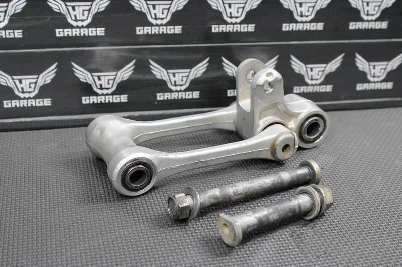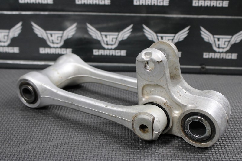 This rear shock linkage is in very good condition and shows normal signs of wear. Bearings in great shape with low wear. No cracks, or breaks in linkage assembly. Ready to bolt on and ride.!