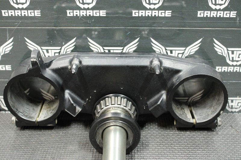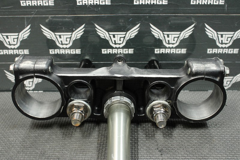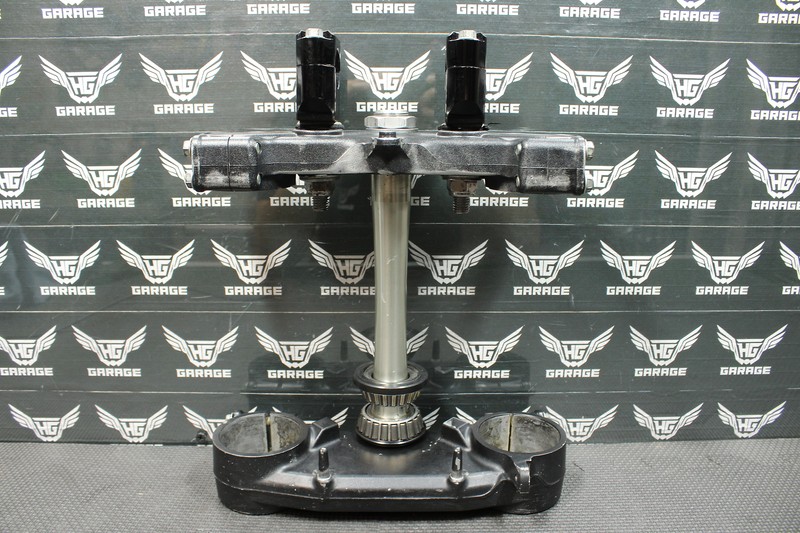 This triple tree set is in very good condition and shows normal signs of wear. Nice and straight with all threads intact. Bearings turn freely. Ready to install and run!