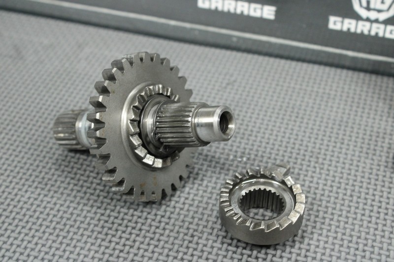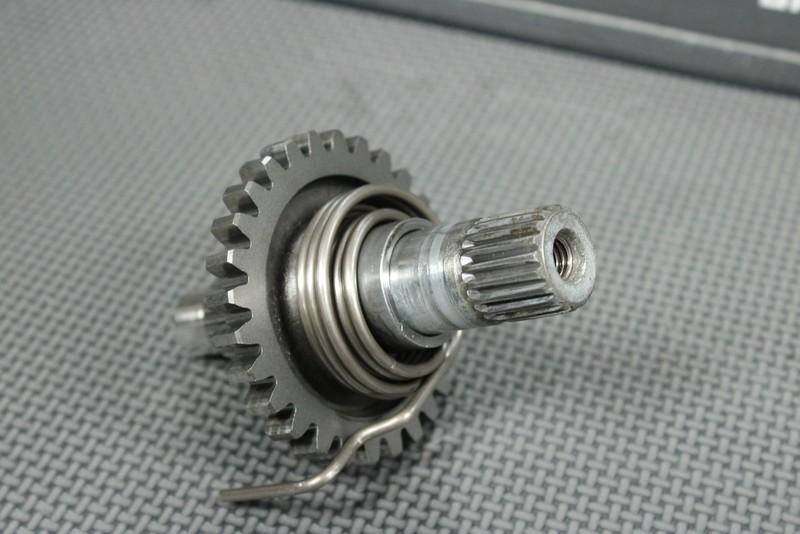 This kickstart gear with shaft is in very good condition and shows normal signs of wear. Nice functioning shape. No cracked, or chipped teeth. Functions as it should. Ready to install, and ride.