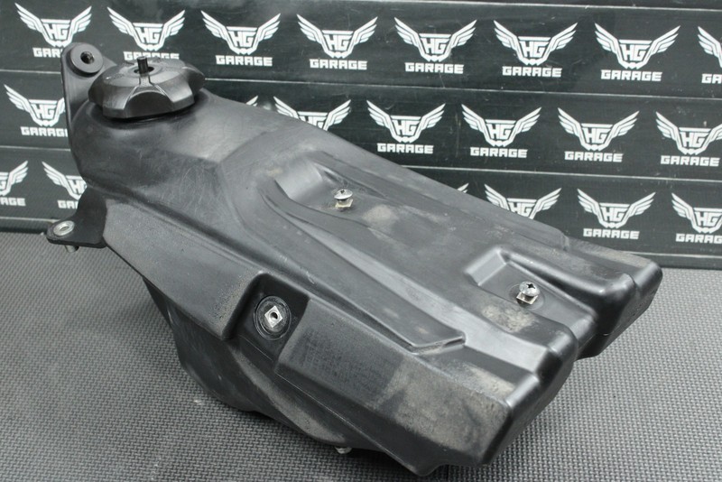 This oem gas tank is in very good condition and shows normal signs of wear. No cracks, or leaks. All threaded inserts intact and thread properly. Has some minor scratches, and scuffs from normal wear. No fuel pump included. Ready to assemble, and install.
